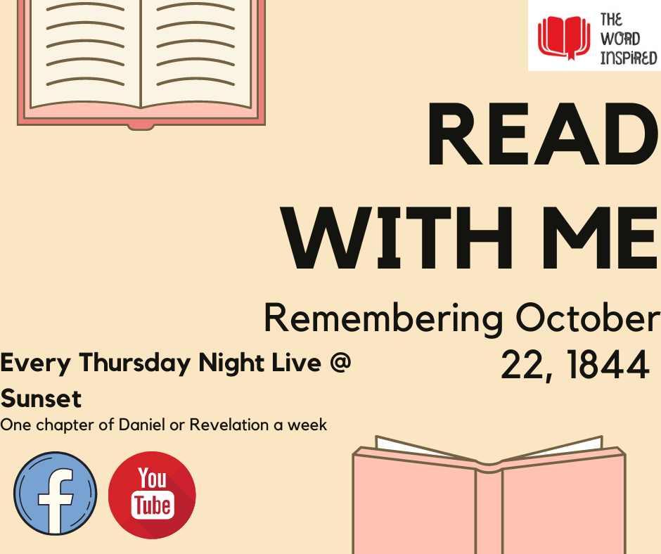 In commemoration of this day, the Lord has inspired me to start a Read with Me series. God willing, every Thursday night at sunset, I will read a chapter of Daniel and then Revelation live on Facebook and YouTube.