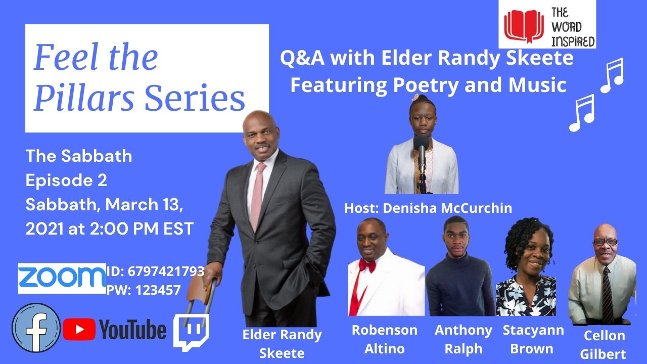 I pray you are well! Feel free to join me, Sabbath, March 13 at 2:00 PM EST as we discuss the Sabbath doctrine with Elder Randy Skeete by way of question and answer. We will also be featuring virtuoso pianist, Robenson Altino. You can join via Facebook, YouTube or Zoom.